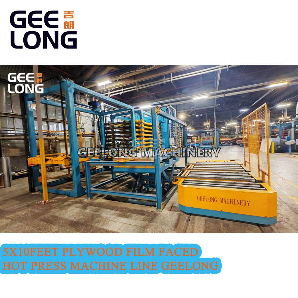 Automatic 5x10feet 4×8feet plywood film faced hot press machine, this line can do 4x8feet film faced plywood also can do 5x10feet film faced plywood, this line hot press machine is vertical model, not transverse model, this film faced plywood hot press machine includes as below: